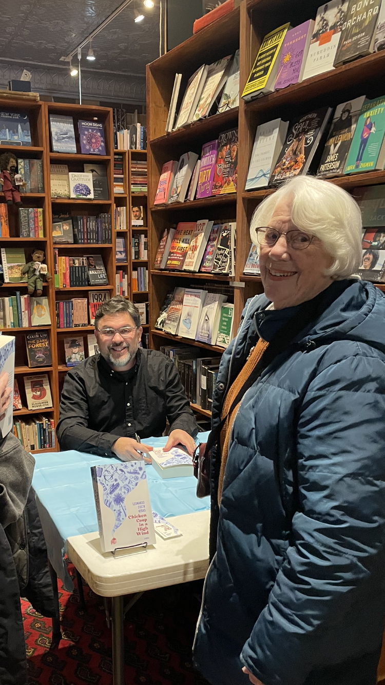 A book preview for Chicken Coop in a High Wind among friends and family in Red Wing, Minnesota.